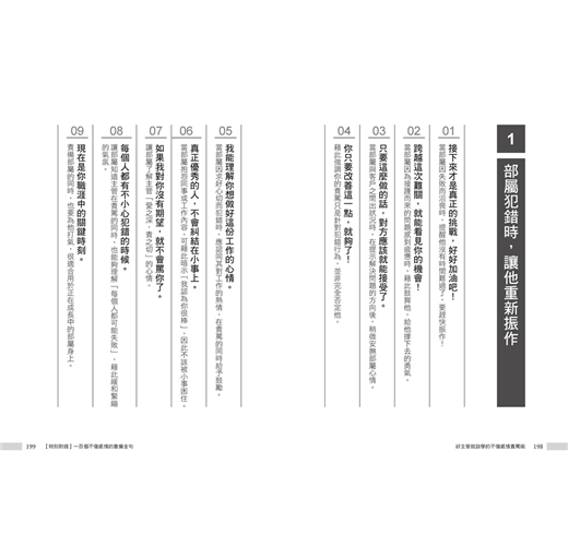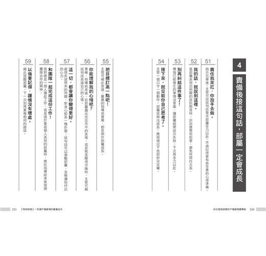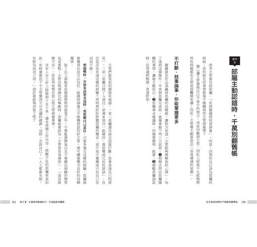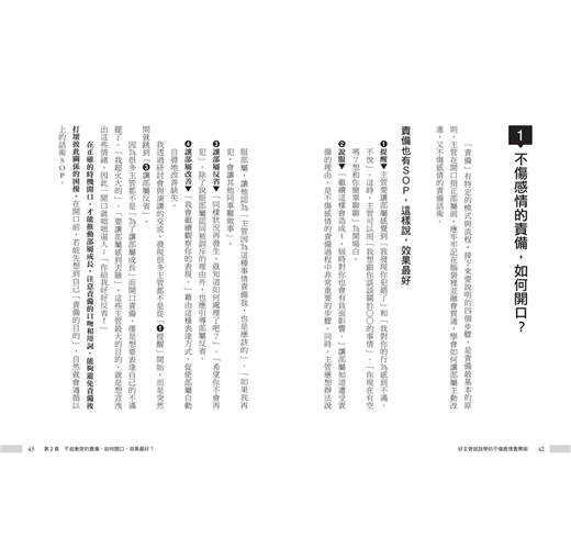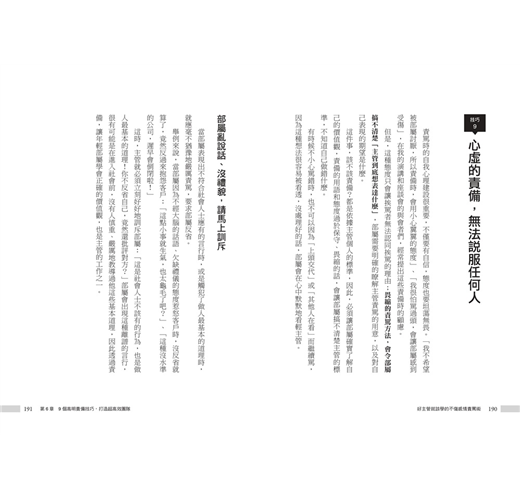 除此之外,上班常遲到、只會道歉卻不見改善、抱怨工作內容、敷衍了事等,這些看似很小的狀況,卻是心態錯誤的表現。因此,你必須挑對時機,選擇正確的責罵句,將責罵次數降到最低。
