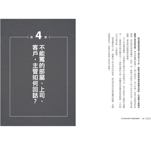 書中收錄56個不傷感情的責備技巧,不敢罵、不懂罵的主管,先了解罵人的原則,面對各種事件、對象,教你如何成為「罵人後,不被討厭」的高明主管,帶出態度好的高效率部屬。