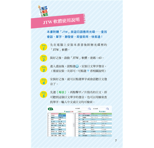 隨書附贈→「JTW」旅遊日語會話‧單字速查軟體!有聲音的哦!