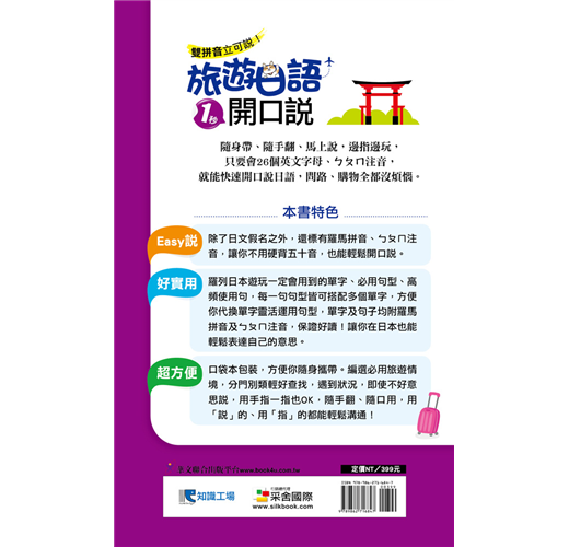 超方便──口袋本包裝,方便你隨身攜帶。編選必用旅遊情境,分門別類輕好查找,遇到狀況,即使不好意思說,用手指一指也ok,隨手翻、隨口用,用「說」的、用「指」的都能輕鬆溝通!