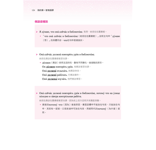 2. 一目瞭然的語法規則:將語法以圖表有系統地統整、歸類,搭配作者詳細解說,俄語其實很簡單!