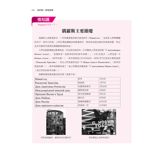 4. 讓您更親近俄羅斯的俄知識:不論是俄羅斯傳統節慶、作客禮節或是美食佳餚,本書統統告訴您!