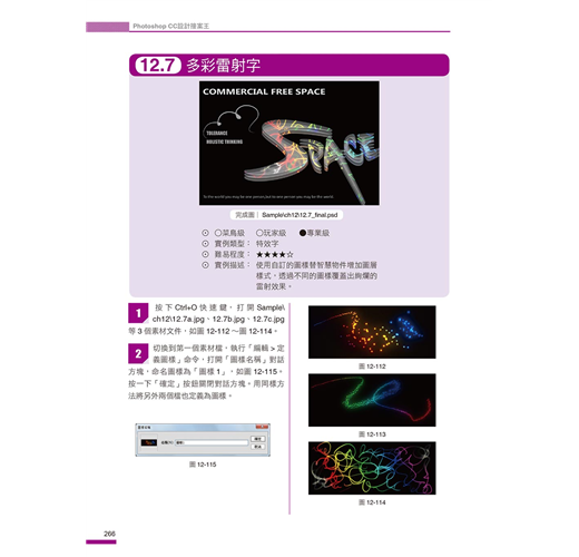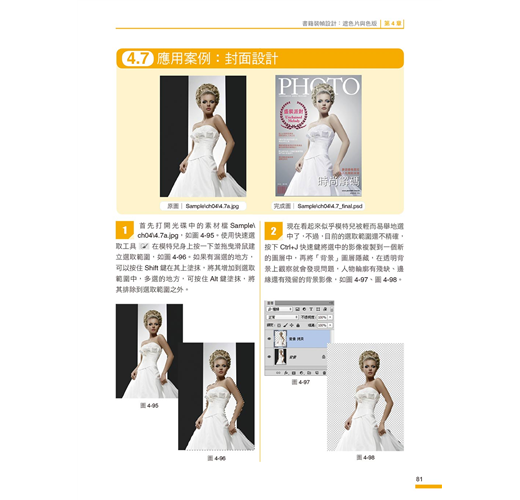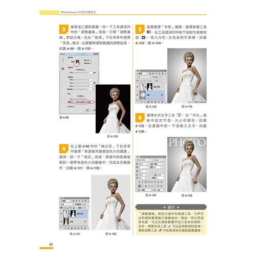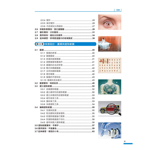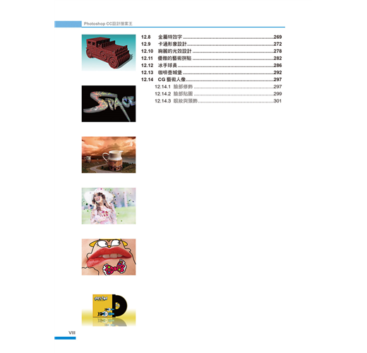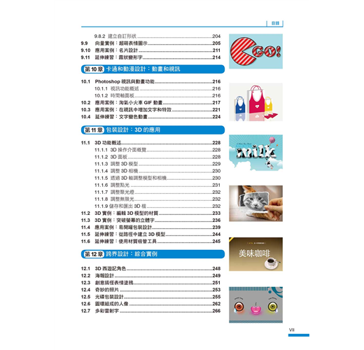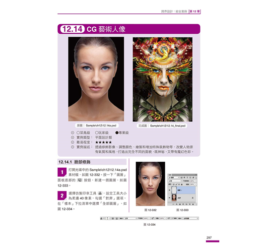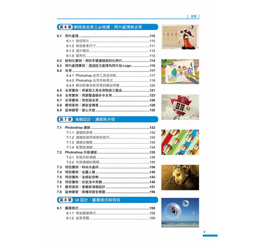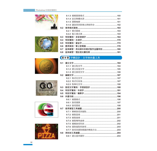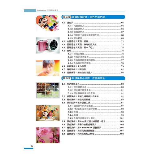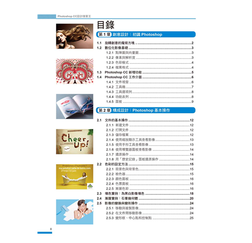 我們將Photoshop最常用到的功能以及各種設計技巧,融合在各種案例中,您不必章章跟著學,只要隨興翻開,挑選想要的風格或作品,跟著學,就能讓您無痛學會各種設計技巧。