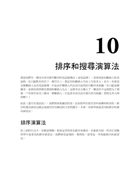 在後續章節裡,則包含了圖形、深度優先搜尋(DFS)以及廣度優先搜尋(BFS)。你將學習到如何掌握各種搜尋及排序演算法,包含循序搜尋、二分搜尋、快速排序、以及氣泡排序等。而在本書的最後,也將探索動態規劃(dynamic programming)的概念。