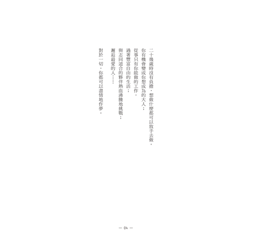 二十幾歲,是做夢的年紀;這樣的你,嚮往自由。