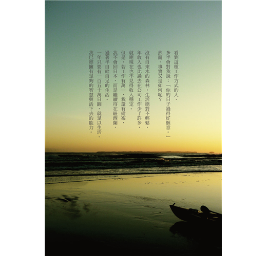 作者捨棄百萬暢銷製作人的工作,實現學生時代搬去紐西蘭居住的夢想,過著遊牧生活,二十幾歲時,曾是個風評很差的業務員,因為無法融入組織而不被喜愛。這樣的他無法在工作上闖出一片天,勇於做出的選擇,竟是「捨棄」。