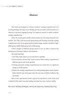 作者根據自身實際教學經驗,設計「建構式提問法」教導學生國文。研擬出增進國中生閱讀理解能力的學習策略訓練課程教學模組,提供國中教師做為幫助學生強化國語文學習之參考。