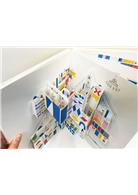 像是車陣中有大大小小不同的車子,第一眼,我們只看到每一輛車的形狀、外表和顏色;不過,透過翻開立體設計,我們卻可以看到有剛剛購物完要回家的太太,還有帶著狗狗出門兜風的小姐、準備要去旅行的老先生等。公園或是博物館裡也有穿著各異的人們正在做不同的事情。