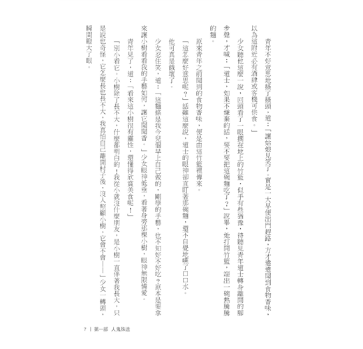 少女聽他這麼一說,回頭看了一眼擱在地上的竹籃,似乎有些猶豫,待聽見青年道士轉身離開的腳步聲,才喊:「道士,如果不嫌棄的話,要不要把這碗麵吃了?」說畢,她打開竹籃,端出一碗熱騰騰的麵。