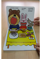 女兒看到三個動物把食物和牙刷放進嘴巴,自己也會跟著模仿。