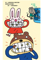 這件事讓我嚇了一跳。重點是,孩子看了書上的大熊哥、兔小妹和老鼠弟弟的牙齒變得又白又亮後,高興的說:「變得好乾淨,亮晶晶呢。」