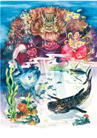 「那些人算什麼?不過是一堆螻蟻罷了。那些海族也是死有應得,誰叫牠們是龍王的子民呢?」晏公不屑地說。「兩軍交戰,豈有不傷不亡的道理?就看哪一方傷亡慘重,自願服輸向對方投降啊!哈!我知道龍王快撐不住了,只要再多個三五日,他必然要來與我交涉談和,我取代他當上海中霸王已是指日可待,想不到卻跑出你這妖婆,來破會我的好事。可惡啊!」