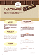「巧克力的保存方法」、「為什麼巧克力的表面會變白?」、「白巧克力也是巧克力?」、「巧克力含有什麼樣的營養素?」以及「明治巧克力的歷史」。