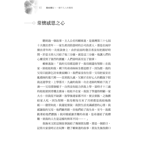 他後來經商,接觸人,接觸社會越發廣泛,大概也經歷過挫折,對人情冷暖、世事浮沉有了很多感受,但他那顆崇文之心、向善之心不變。他一邊觀察,一邊體驗,也一邊記錄,這本書裡的篇章,大概就是這...