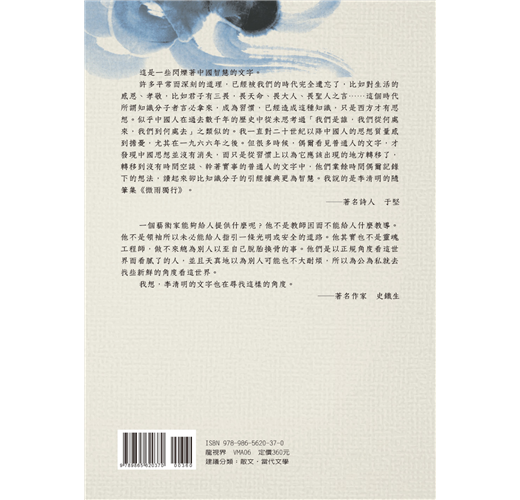 很多時候,偶爾看見普通人的文字,才發現中國思想並沒有消失,而只是從習慣上以為它應該出現的地方轉移了,轉移到沒有時間空談、幹著實事的普通人的文字中,他們業餘時間偶爾記錄下的想法,讀起來卻比知識分子的引經據典更為智慧。我說的是李清明的隨筆集《微雨獨行》。──著名詩人 于堅