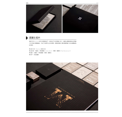 通過本書,我們可以看到特種紙的使用和設計表現的關係愈加緊密,金屬、木料、布料,乃至水泥等非傳統材料也成為設計師們凸顯設計創新的優選方案;以多種印刷方式和四色、專色,以及螢光墨等特種油墨的配合,奠定了設計品的基礎形態;經過軋型、起凸、壓凹、雷射雕刻、UV 等後期工藝加工,強化了設計細節效果;不同的折疊和裝訂方式,最終塑造了風格多變的成品形態。對於每一個案例,均特別提煉了其最重要的設計亮點,以供讀者抓住要點。