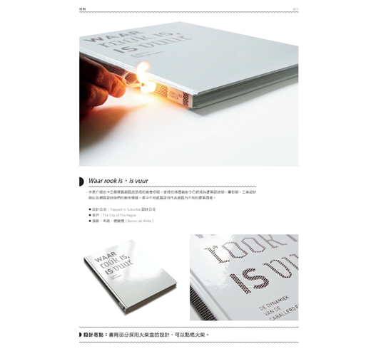 設計亮點:書背部分採用火柴盒的設計,可以點燃火柴。