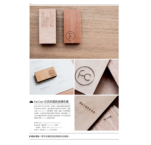 該店主營日式牛肉料理,從選材、烹飪到最終呈現給食客均採用日式技法。設計靈感主要源自日式美學:侘寂之美(Wabi-Sabi),即對樸素、寂靜、謙遜、自然等風格的推崇,也是對自然物和過程不盡完美一面的賞識。不均勻的質地和紋理正是侘寂之美的映像。原木的紋理和痕跡也是對Fat Cow 品牌的記憶。