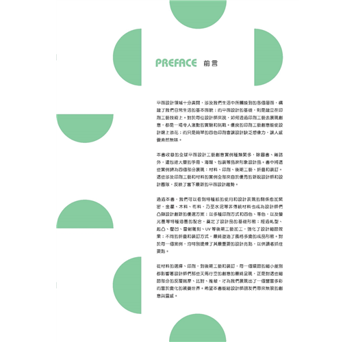 從材料的選擇、印刷,到後期工藝和裝訂,每一個環節的細小差別都影響著設計師們那些天馬行空的創意的最終呈現,正是對這些細節部分的反覆揣摩、比對、推敲,才為我們展現出了一個豐富多彩而富於變化的視覺世界。希望本書能給設計師朋友們帶來無限的創意與靈感。
