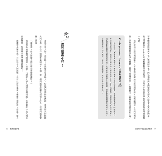 想要做自己、成為更好的人,必須自信勇敢,放膽前行不畏懼,面對紛亂的大環境,這本書的視角與觀點,值得你我省思、正視。