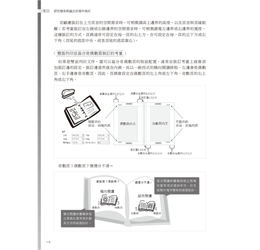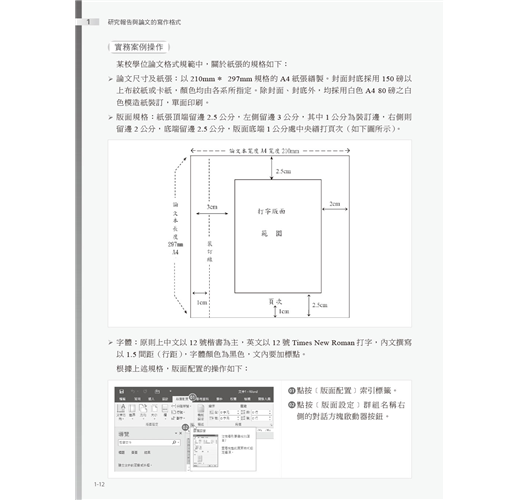 .以學校博碩士論文範本為圭臬,結合書中案例與說明,迅速了解論文中各種章節體裁的內容及製作編排和規範