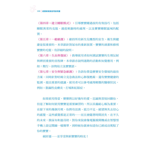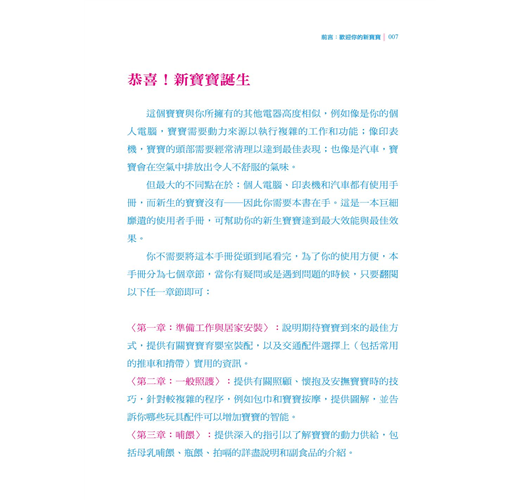 相當獨特的育兒書,正確性高、易讀性高、實用性也很高,可以快速上手,非常適合忙碌的新手爸媽!