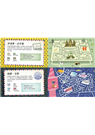 而這本書最酷的就是,行進的路線可不是照著書裡原本的順序,這48張小地圖可以左右翻動,從這個地點可以連接到下一個地點!祕訣是尋找迷宮之間是否有相同的交通工具!我就不多說了,快點來挑戰吧!!