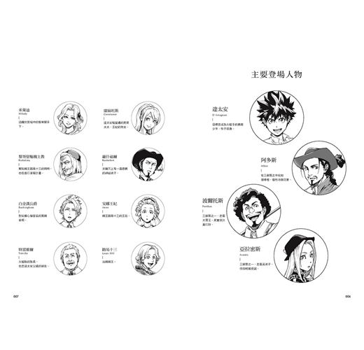 途中,他與三名火槍手阿多斯、波爾托斯、亞拉密斯組成的三劍客,結為生死之交。