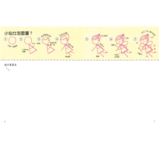 藉由單純的幾何形狀、線條以及文字引導,讓小畫家們擁有源源不絕的美妙靈感,循序漸進激發出無限創造力,簡單輕鬆完成可愛又生動的圖畫。