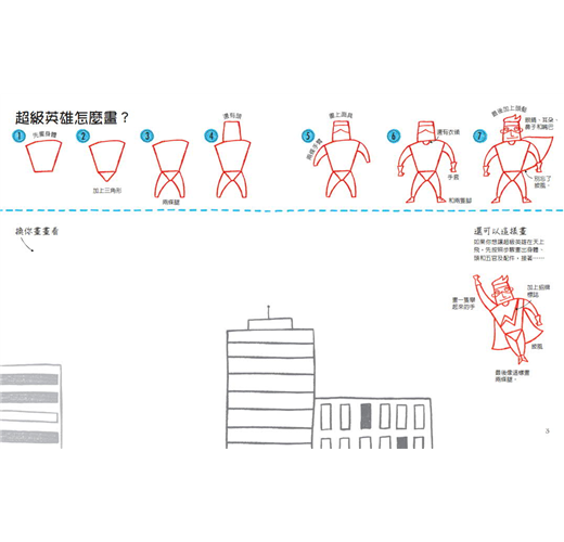 畫畫是激發想像力及創造力的活動。透過指引,孩子除了學習模仿之外,他們會依序漸進的調適、建構出一套屬於自己的繪畫步驟,延伸出無限的變化,激發整合和觀察的能力。非常棒的一套書,教孩子辨認簡單形狀,以及解構圖像的基礎概念,幫助小小畫家建立信心。