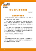 新日檢N2考試共有二節,第一節是「言語知識(文字‧語彙‧文法)‧讀解」,第二節是「聽解」。考試時間各為105分鐘、50分鐘。