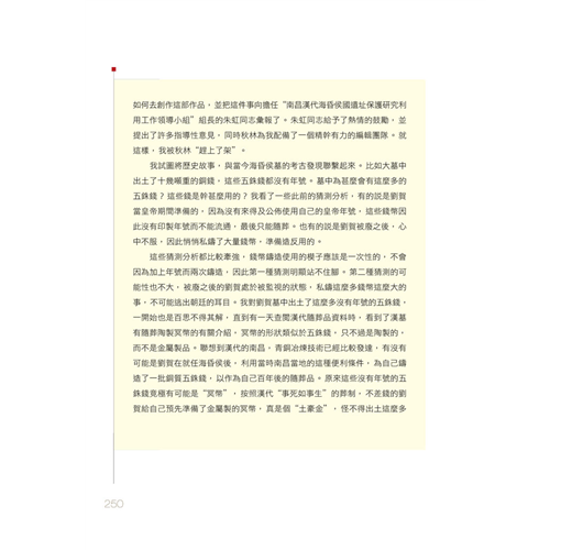 出版當為時而作。我很欣喜地看到,在中國出版界享有盛譽的二十一世紀出版社集團,勤於思,敏於行,很快組織編輯出版了這部帶有歷史紀實色彩的文學作品 ── 《西漢海昏侯墓大發現與墓主劉賀傳奇》。這部作品以翔實的史料為依據,結合墓葬考古發掘的大量文物,從撲朔迷離的正史和奇聞軼事的野述中,條分縷析,穿越歷史風煙,以獨到的宏觀視野、真實的歷史細節和生動流暢的描述,將漢廢帝劉賀傳奇的前世今生娓娓道來,呈現了一個不為人知的全新的有血有肉的劉賀。作者以史為鏡,與古人對話,夾敘夾議,採用史實證據和人物對比手法,從王位爭奪、權力角逐、從政智慧、成敗得失的前因後果中,探幽發微,闡發自己對家國的深刻思考,對民族的赤誠熱愛,對歷史人物的明徹剖析。這對於幫助廣大讀者了解劉賀以及海昏侯墓遺址,都有著莫大的幫助。特別值得提出的是,在慢慢撩開了歷史的面紗之後,作品最後部分還別開生面,以假設歷史可以重來、劉賀可以再生的方式,與歷史展開了深度對話,提出有權不可任性、年輕不可任性、有顏值不可任性、有功勞不可任性、有靠山不可任性、有冤屈不可任性六個維度的全方位思考。這種思考,既是來自歷史深處的深刻