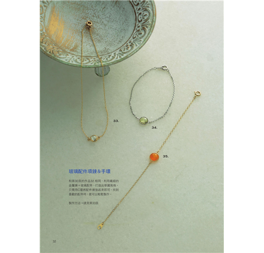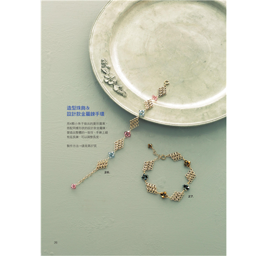 ◎本書教您DIY手作美麗的飾品,透過手環的製作設計,延伸耳環及項鍊的整體搭配,同時,我們利用水鑽、天然石、玻璃珠、蕾絲等不同素材的形狀及大小配件,營造出整體的一致性,製作出獨一無二的專屬飾品。