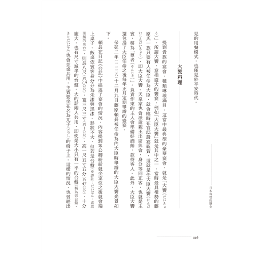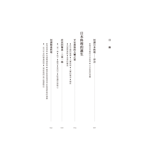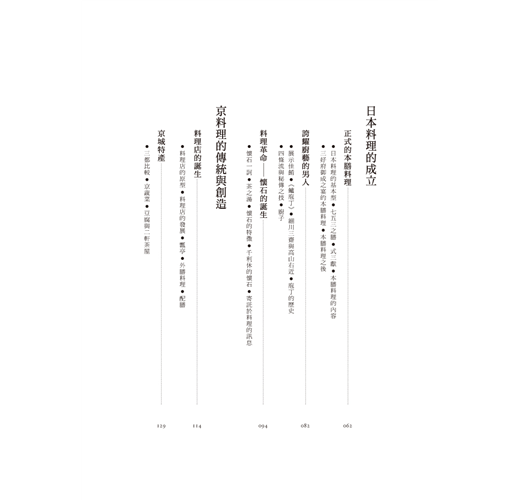有別於以往談論日本現代飲食文化的書籍,這本書深入探討古時在外來文化的影響之下,以京都為根源的日本料理是如何形成;在宗教與禮法的規範之下,又是如何奠定今日我們熟知的傳統日本料理形式。