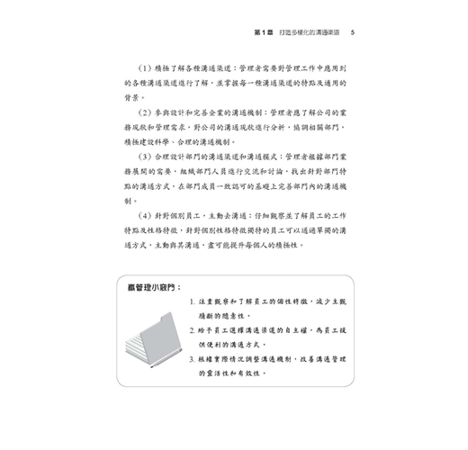 管理者在與員工交談時,如果表達條理清晰、主次分明,員工就會很容易記住上級交代的指令,溝通效果會更好。