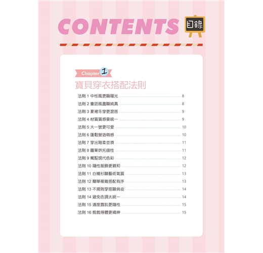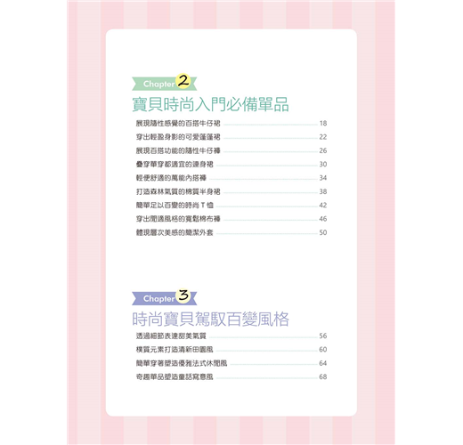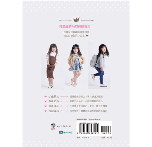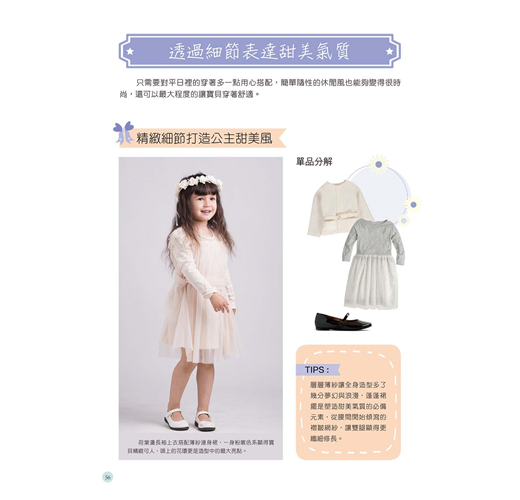 潮流趨勢不停地變化和升級,完全不懂穿搭的父母不必緊張,本書從童裝的搭配基本技巧著手,從一目了然的案例中獲取實用的搭配方法,也為已經具備搭配功底的父母準備提升審美和應變能力的方案。本書遵照「零基礎、快提升」的圖例示範方式,讓孩子的時尚品味不受父母穿搭素養的局限,快速成長為在生活中受歡迎的人氣時尚寶貝!