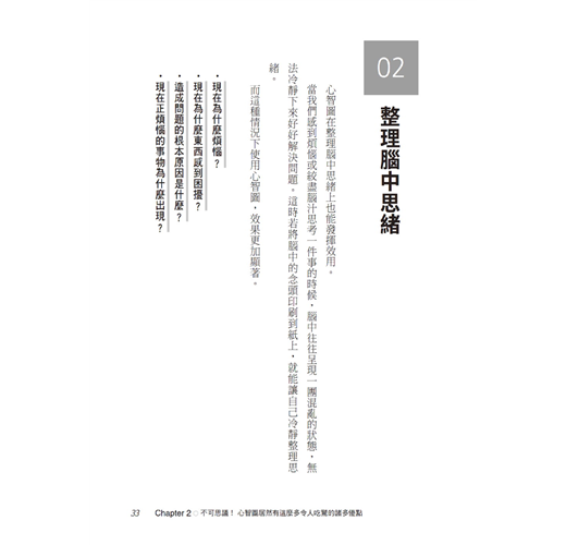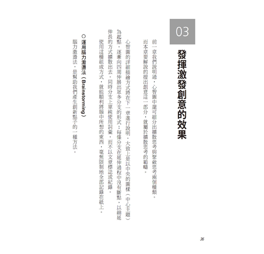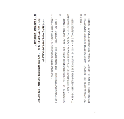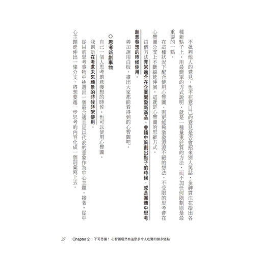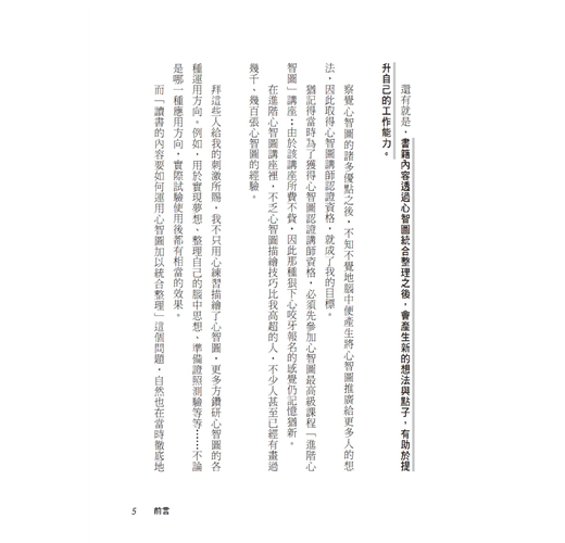 在這一本書之中,必可讓各位讀者清楚理解心智圖的內容。