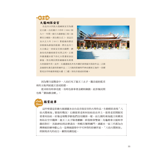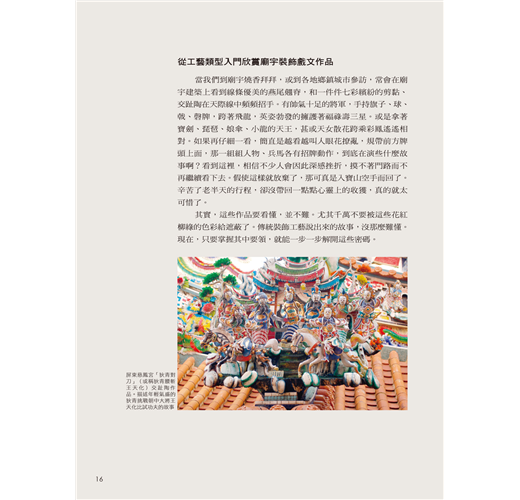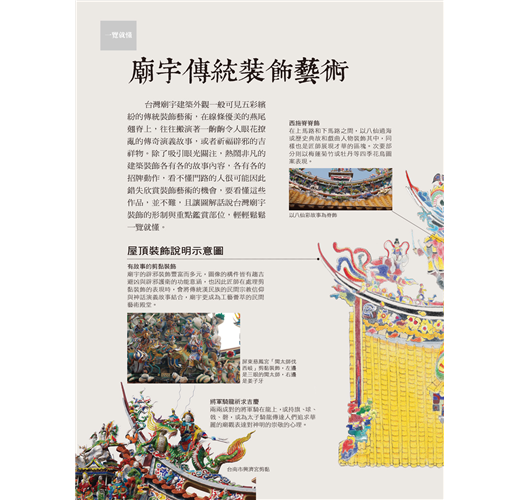 ◎ 特寫廟宇裝飾藝術,集圖鑑之優點,不落俗套的圖解故事重點,人人皆可輕鬆閱聽