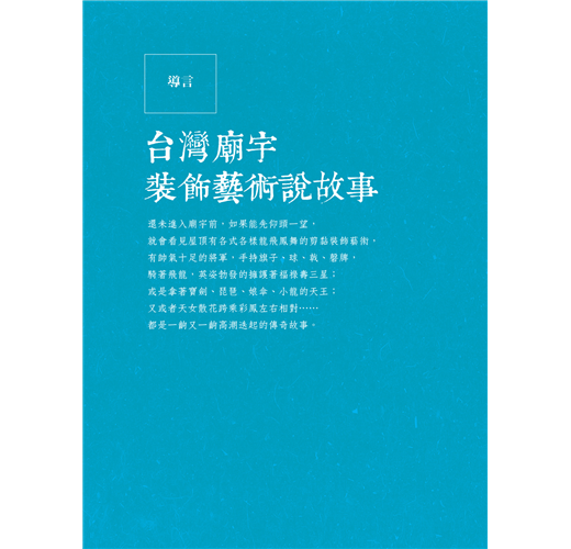 台灣廟宇集民俗工藝之大成,裝飾藝術鋪陳的歷史演義或章回故事豐富多元,卻並非人人可解。有鑑於此,作者長年收集廟宇工藝中的經典故事,透過生動淺白的賞析,讓人人都能深入了解其中衍生的意義。本書引領讀者如何從鑑賞裝飾藝術美感的角度,遍覽廟宇工藝文化,讓走入廟宇殿堂的人都能平易的接近工藝欣賞,是提供一般讀者親近廟宇民俗藝術的最佳指南。