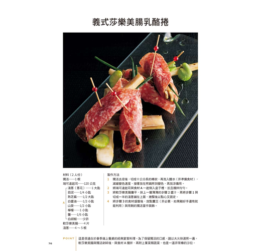 在「宴客沙拉」的內容裡,收集為了特別日子而稍微用心製作的沙拉食譜,每一盤沙拉都能端上家庭聚會與宴客的餐桌。除了介紹以肉或生魚片作為主角的「款待主菜沙拉」,也介紹以生火腿、新鮮起司製作的「前菜類沙拉」,利用義大利麵與棍子麵包製作的重量級「正餐沙拉」,還有利用水果當作主角的「甜點系沙拉」,也有在用餐間歇之際與餐後品酒時間滿足味蕾的「小點心類沙拉」,巧妙地讓這些沙拉食譜穿插在聚會菜單裡,感受舌尖上的輕奢食感,以華麗百變的宴客沙拉,打造賓主盡歡的五星級饗宴!