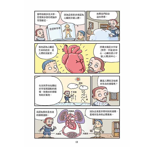 本書從趣味的角度出發,網羅了數學、物理、化學、天文、醫學、地球科學、現代科技等領域,闡述科學與各時代背景。書中並補充科學家相關軼事,用生動有趣的漫畫,讓讀者對故事印象深刻,在正式學習到這門學科時,會比其他人更容易記住這門學科,也能夠有更好的聯想與發揮。