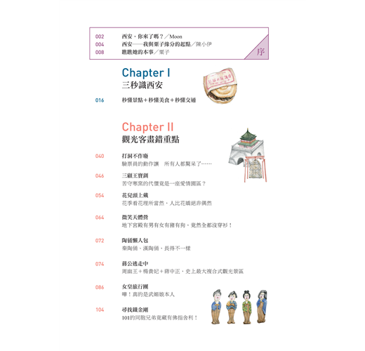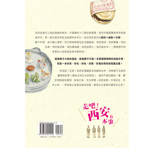 把政經(正經)的西安隱藏版全給翻挖出來,用稍微不正經的觀察與妙筆(還有光明正大的偷拍),謔而不虐的戲說一番,關於景點遊玩要領、飲食口味、生活習慣、拍照姿勢、行車安全、市井小民……等等風土差異及旅途見聞,簡直比兵馬俑坑還活色生香!