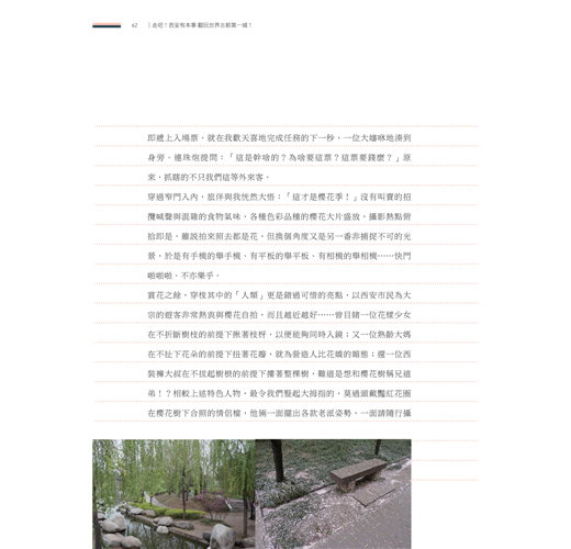 儘管檯面上的「本事」精彩萬分,但身為一位熱中畫錯重點的秘密觀察者,檯面下的見聞更是我念茲在茲的樂趣所在。於是,頗有距離感的「文化歷史名城」在添入當地人情互動後顯得可親可愛,當然過程中難免會有驚心動魄、匪夷所思、莫可奈何、置生死於度外的時候,這些千金難買的真實體驗,恰恰是《走吧!西安有本事,翻玩世界古都第一城!》的獨門寶庫!