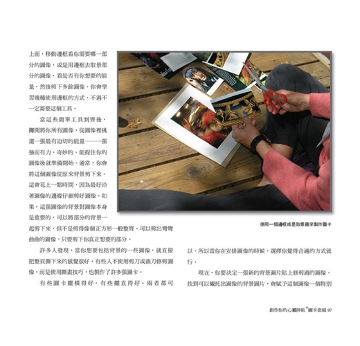 每個人都能對這般多層次、有創意的流程,樂在其中。你只需要準備一把好剪刀、一些空白卡、黏膠,以及隨處都能找得到的圖像,就可以開始探索這神奇的拼貼之旅。