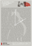 故事裡熱愛藏書的反派人物,直截了當地說自己創作的「作品」是:「多麼大的勝利啊……一個悲慘寫實的故事,一部後設小說,回顧創作過程本身的殺人陰謀……」《魔鬼的手稿》結尾驚人的翻轉,將令你目眩神迷。─《華爾街日報》書評