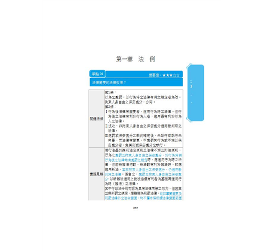 1.以表格解說,替考生整理國考常考爭點,幫考生過濾,輕鬆掌握出題方向,達到效率及投資報酬率最高的讀書方式。