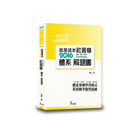 這本《社會學體系+解題書》,是針對所有三、四等考試量身打造的解題書,筆者打破以往傳統編排方法,為考生量身訂做的一本書。除了以歷年考題為核心整理考試重點,搭配相關考題,使讀者能在複習完重點後,立刻接觸到考題,加強考試記憶外;更重要的是,筆者在書中的重要議題都會放入相關社會時事文章,使讀者在準備考試時,可以跳脫原有的社會學理論框架,結合現下社會熱門時事,使社會學念得更加靈活。