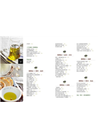 從一顆小小橄欖開始,帶領讀者先讀懂油標,如何買到優質的油品,橄欖油各個主要產地的口感及特色,到最重要的料理方法與油品的搭配,並更深入將料理類別區分為: