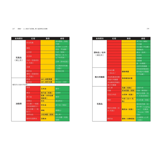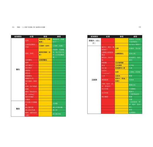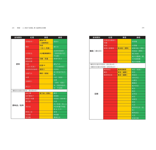 ※全彩紅黃綠三區食物列表,輕鬆按照GI值高低選擇飲食。