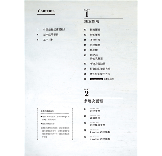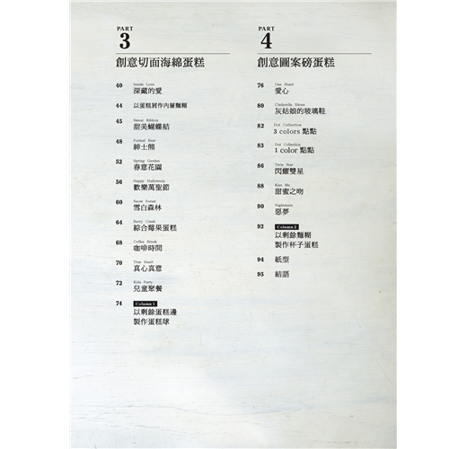 本書要介紹的是「多層次蛋糕」、「創意切面海綿蛋糕」、「創意圖案磅蛋糕」